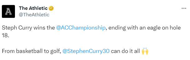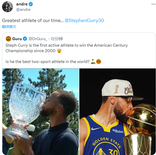 美媒紛紛刷屏祝賀庫裡,NBA Central發推寫道:庫裡冠軍;TA恭喜庫裡的同時寫道:從籃球上到高爾夫賽場,庫裡真的無所不能。