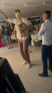 在馬賽上,約基奇經歷過一段時間的失意,值得一提的是約基奇曾在輸掉馬賽之後拒絕給球迷簽名,不過該球迷用兩罐啤酒俘獲了約基奇的心,最終約基奇在安東尼的掘金15號球衣上簽名,並與球迷合影;如今約基奇終於可以開懷慶祝了,他已經奪得一座賽馬冠軍獎杯,之後約基奇抱著獎杯開心跳舞,擁抱以及親吻友人,開心之情溢於言表。