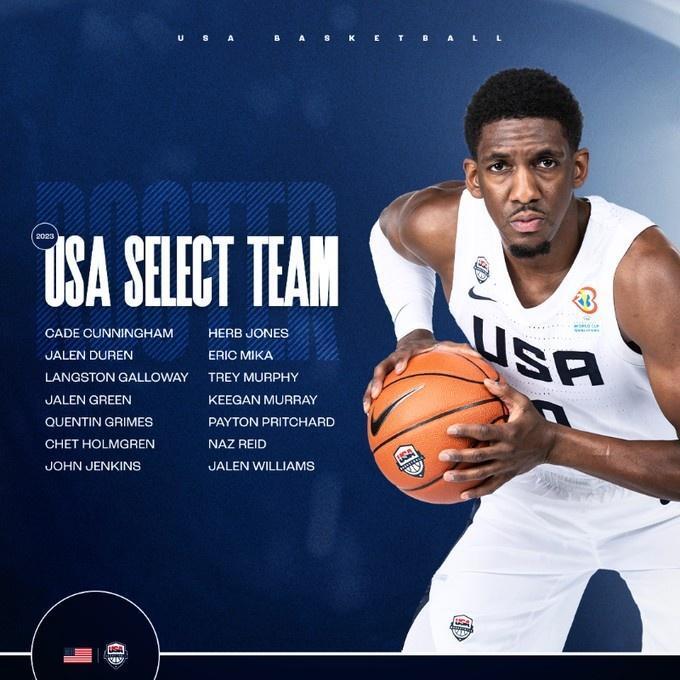 7月25日,距離2023年男籃世界杯僅剩一個月的時間。在今天早些時候,美國男籃官方公佈了選拔隊14人大名單,其中包括活塞隊坎寧安,火箭隊杰倫-格林,雷霆隊霍姆格倫等11名現役NBA球星。