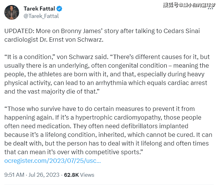專家在接受湖人記者Tarek Fattal採訪時說道:1.很有可能布朗尼先天心臟就有問題;
