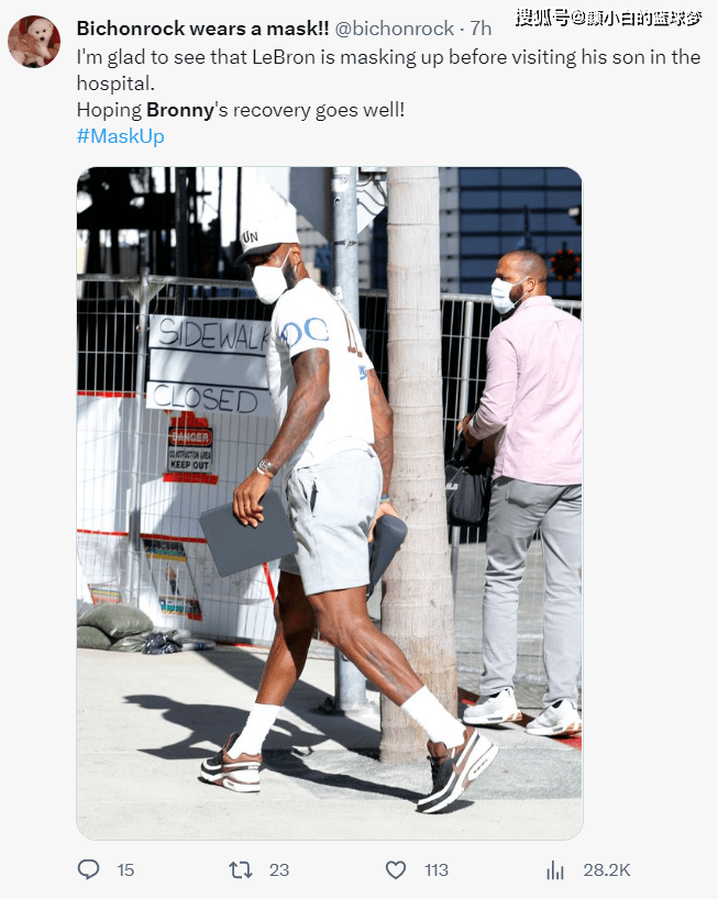 詹姆斯帶著口罩前往醫院看望布朗尼,為了不引起更多的關注度詹姆斯一行人很低調但還是被拍了。
