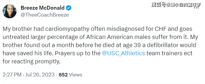 評論區有一位記者也分享了自己哥哥患有心肌病的往事,他說有很多非裔美國人患有這種疾病,但哥哥被誤診為充血性心力衰竭沒有用除顫儀最終去世。擁有一個快速反應的醫療團隊是多麼有必要。