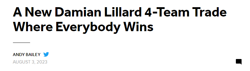 8月4日,利拉德和哈登的交易依然沒有達成,知名美媒Bleacher Report提出了一筆4隊大交易的方案,相信可以實現共贏,涉及的4支球隊包括開拓者、熱火、76人和公牛。具體方案如下——