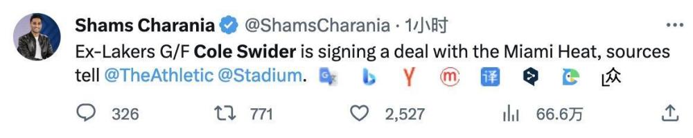 8月7日,NBA進入休賽期。據名記Shams報導,多位消息人士透露,熱火隊簽下前鋒科爾-斯威德。