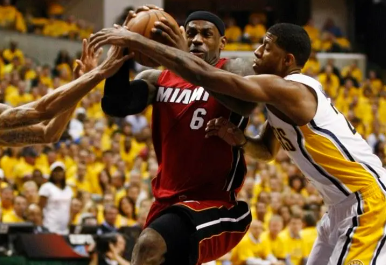 次輪對陣步行者,這輪系列賽球隊的第三巨頭波什打了16分鐘就退出了比賽,並且直到系列賽結束都沒能複出。前三場打完熱火又快陷入了絕境,此時的他們已經是1-2的比分了,第四戰還是在步行者的主場,但凡他們沒能贏下這場比賽基本上就可以宣布他們的淘汰了。而詹姆斯顯然是不允許這樣的情況發生的,這場比賽詹姆斯出戰44分鐘27投14中,罰球16中12狂砍40分18籃板9助攻2搶斷2蓋帽力挽狂瀾幫助球隊將大比分扳平。那輪系列賽由於波什的缺席,詹姆斯不得已只能不停的頂到四號位甚至是五號位,所以最終他的場均數據為30分10.8籃板6.2助攻2.7搶斷,其中場均3.5次的前場籃板也是那年四輪系列賽里的最高。