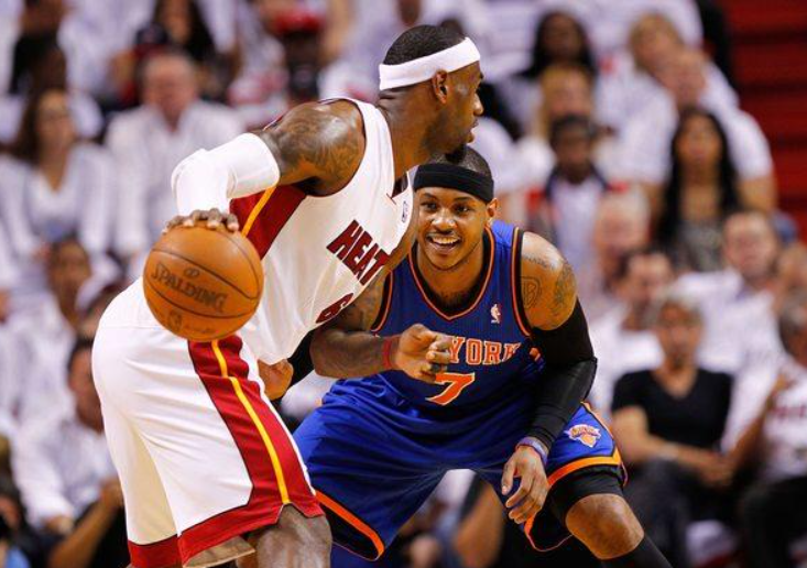 首輪對陣尼克斯,面對自己的好兄弟安東尼,詹姆斯沒有絲毫的手下留情,第一場他14投11中,罰球14中11砍下了32分4籃板3助攻4搶斷,並且還帶隊贏了尼克斯33分為系列賽定下了基調,最終熱火也只用了5場比賽就淘汰了尼克斯,這輪系列賽詹姆斯場均砍下27.8分6.2籃板5.6助攻2.2搶斷。