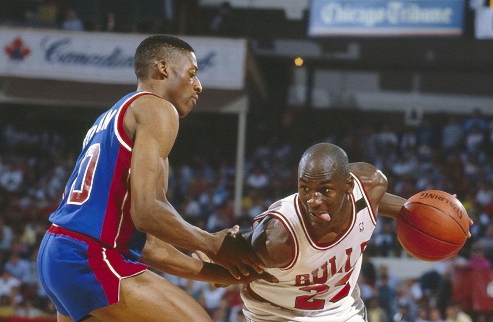 系列賽首戰喬丹22投10中砍下29分11籃板6助攻,如果蓋掉喬丹的名字,這樣的表現已經非常出色了,但畢竟那個時候喬丹就已經是被很多人看好了,所以難免也有些球迷對他產生了失望的情緒。在對陣活塞的系列賽中,喬丹被喬杜馬斯領防,而他的身後則是有著蘭比爾、馬洪、羅德曼的協防,這些人可都不是什麼善茬,所以即便是喬丹在第一次面對他們的時候也沒能找到立馬解決他們的辦法。