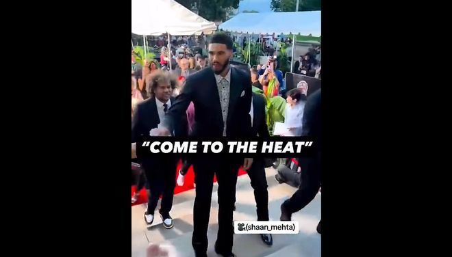 波士頓凱爾特人球星塔圖姆出席名人堂頒獎典禮,搞笑的是,他竟然在現場被熱火球迷招募。