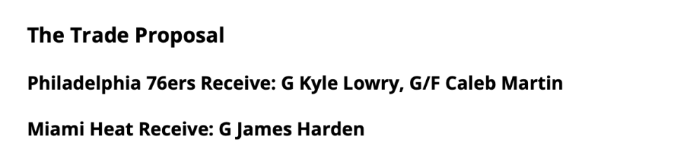 與熱火的交易模擬是熱火送出洛瑞、凱萊布-馬丁得到哈登,也是2換1,沒有任何一個選秀權,這樣的交易很明顯能說明哈登的言論讓他的交易價值再度下跌。