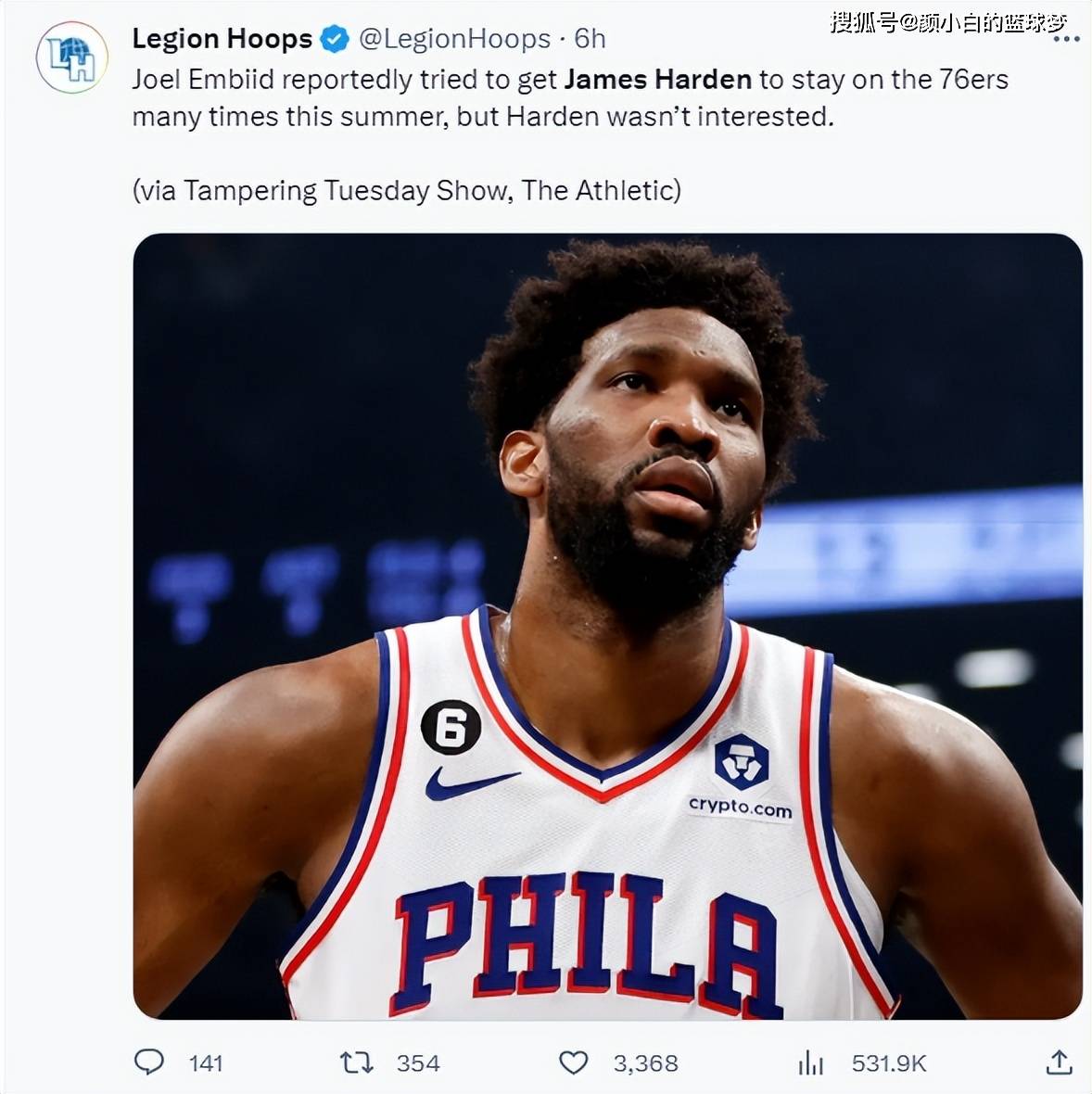 根據TA的報導,恩比德在今年夏天多次試圖說服哈登留隊,但哈登都予以拒絕,理由就是不願意在跟費城高管共事。