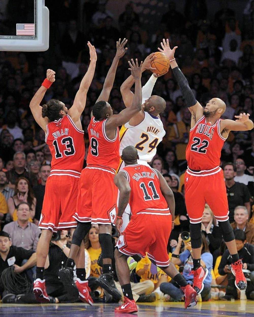 科比打服全聯盟的方式比較直接,那就是不停得分!雖然科比有時候命中率確實不高,但要知道他職業生涯的大多數出手,都是面對至少兩人的包夾,甚至還有三人、四人、五人的協力防守,一對一就算是空位了。科比最高單賽季場均35分,最高單場81分,可以說是把進攻演繹到了極致。