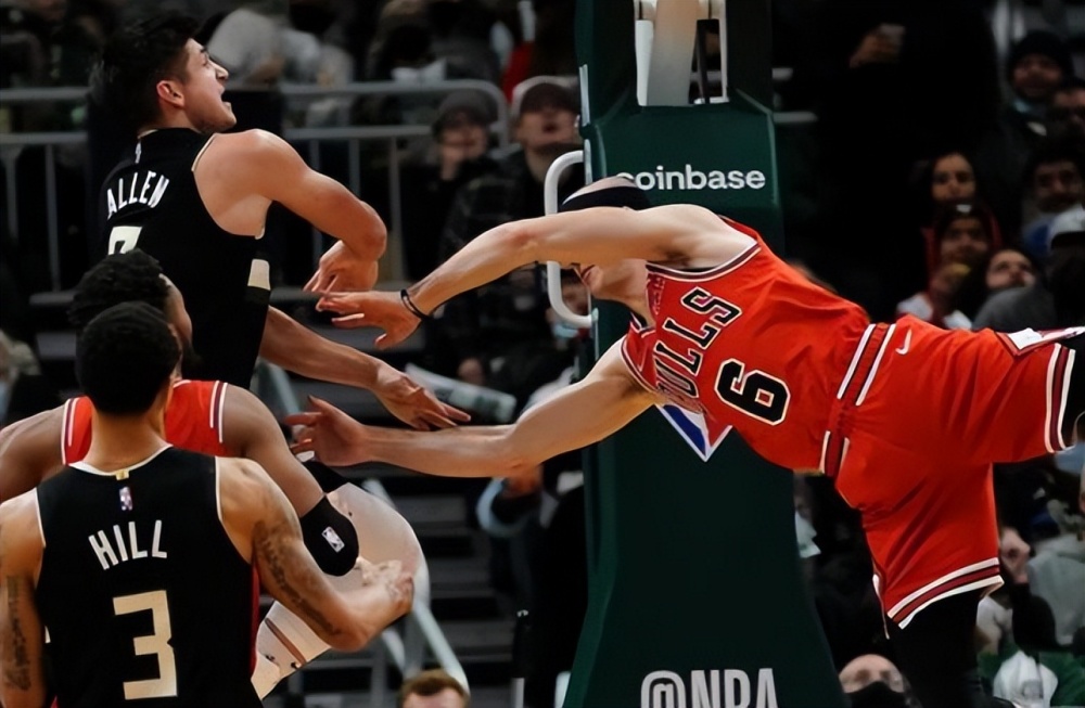 今年在對陣公牛的比賽中,卡魯索在一次上籃中最直接就被阿倫給拽下來了,並且後續阿倫也沒有任何的保護動作,卡魯索在空中失去平衡之後重重地砸在了地上之後,這也導致卡魯索的手腕直接骨折了。在做出這種差點毀掉一個球員職業生涯的動作之後,阿倫沒有任何的悔改之意,值得一提的是賽后雄鹿全隊也在不停的維護他。