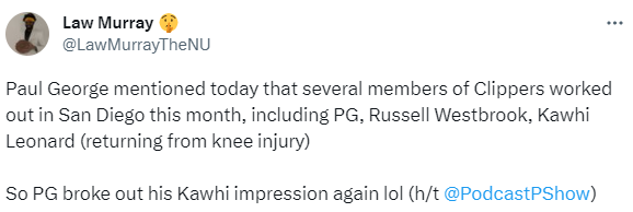 喬治還在節目中透露,小卡的膝蓋傷勢已經痊癒,本月他和小卡、威少等快船球員一起在聖地亞哥進行了訓練。