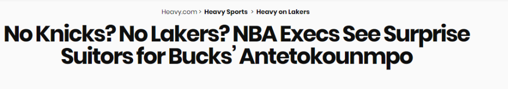 字母哥在採訪中表示不會與雄鹿提前續約,引起外界對他未來去向的猜測。名記Stein報導稱,湖人和尼克斯是字母哥未來的潛在下家,但兩位聯盟高管接受美媒Heavy採訪時表示,詹姆斯很可能一直留在洛杉磯讓字母哥無緣加盟湖人。他們相信尼克斯和湖人的資產難以打動雄鹿,反而是三大黑馬球隊值得關注。