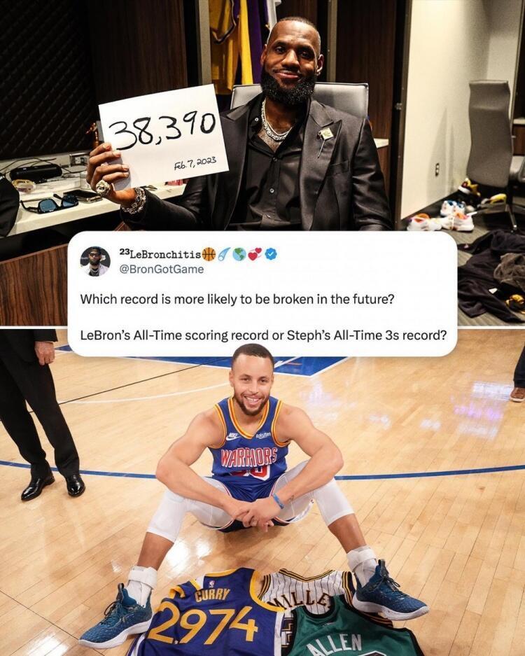 詹姆斯堪稱“不老的傳奇”,而他的得分紀錄未來有沒有可能被打破?ESPN轉發了一個話題,那就是詹姆斯的總得分紀錄和庫裡的總三分紀錄,究竟哪個更可能被打破。這一話題引來大量球迷的討論,絕大多數球迷都認為庫裡的紀錄更可能被打破,詹姆斯的得分紀錄實在太難被超越。