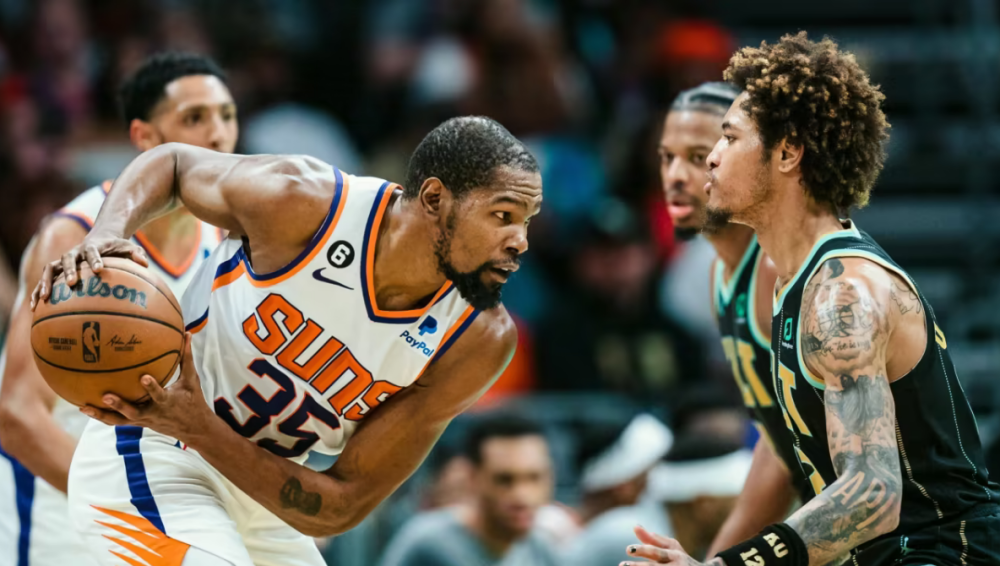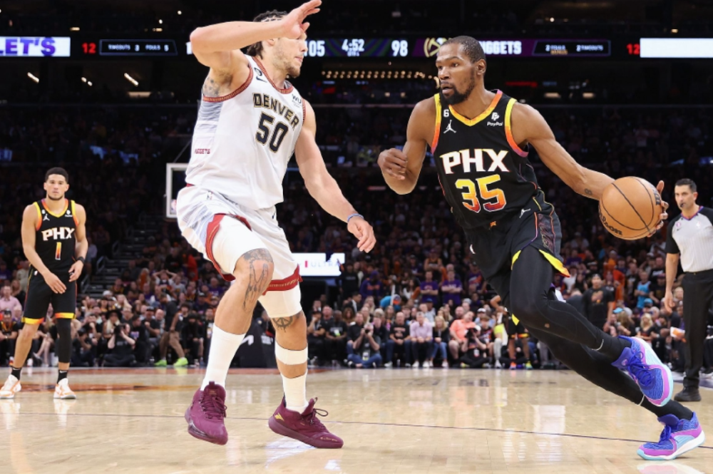 2019年總決賽,杜蘭特遭遇跟腱斷裂,隨后賽季報銷一年,養傷,復出之後,杜蘭特數據下滑不大,但是他的出勤率嚴重下降了,單賽季39場,單賽季47場,單賽季55場。2021-22賽季季后賽,杜蘭特場均只有26.3分,投籃命中率只有38%,三分命中率只有33%。當時球迷都以為杜蘭特的實力因傷下滑了,難以重返巔峰。不過,上賽季杜蘭特在太陽隊打季后賽,重新找到了巔峰狀態:場均貢獻29.0分+8.7籃板+5.5助攻+0.8搶斷+1.4蓋帽的數據,真實命中率高達65%,相當高效。