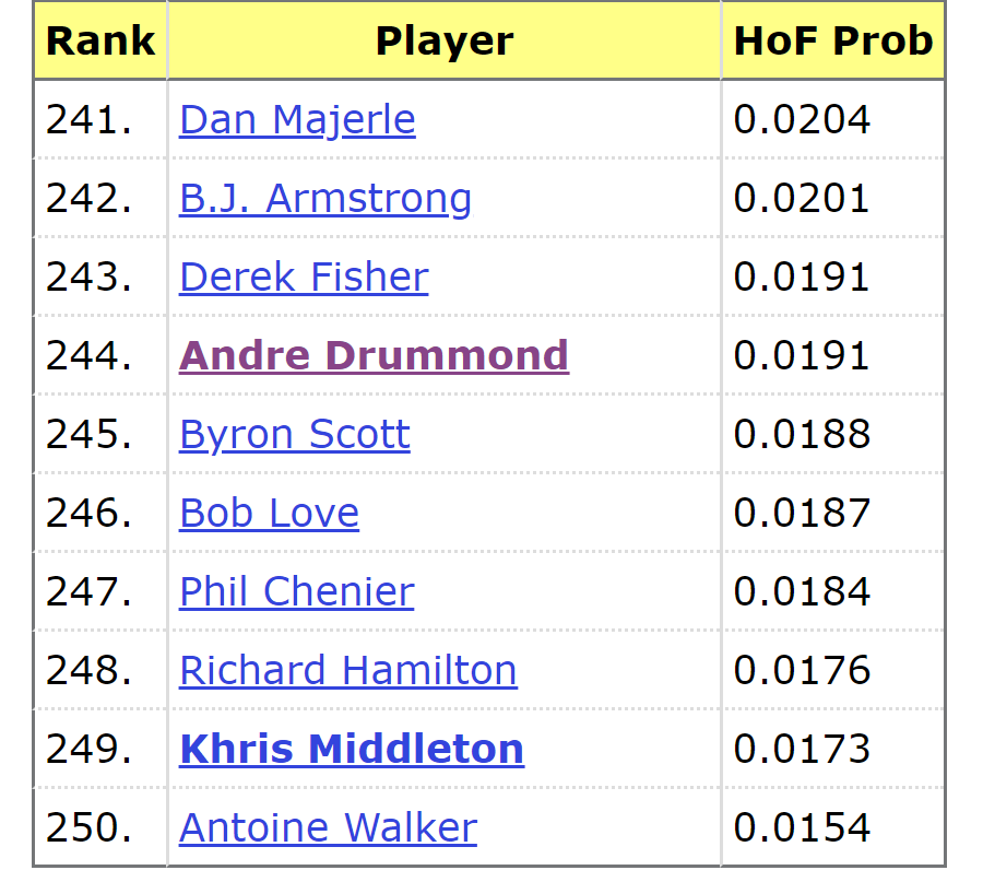 數據上而言,在知名數據網站BBR上,德拉蒙德目前的名人堂入選概率僅為0.0191%,與費舍爾持平——費舍爾雖然手上有五座總冠軍,但應該沒人會認為費舍爾會入選名人堂吧?