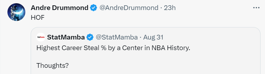 德拉蒙德表示,自己是歷史上最好的籃板手,而且入選過全明星、最佳陣容,憑藉著生涯所做到的一切,德拉蒙德認為自己有機會成為名人堂的一員。