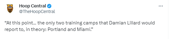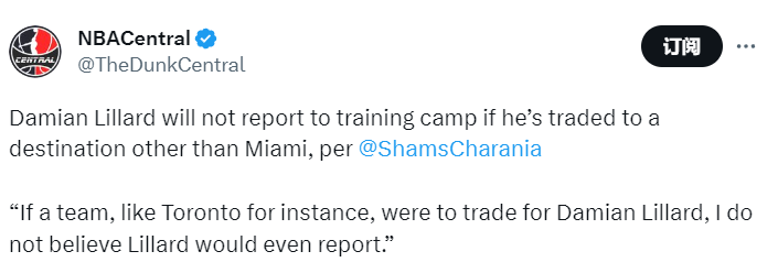 9月12日,據名記Shams報導,開拓者和熱火將在訓練營前重啟談判,如果利拉德被交易到熱火之外的球隊,他將不會前往訓練營報到。Shams在節目上說道:“如果一支球隊,打個比方,猛龍通過交易得到利拉德,我不相信利拉德會去那里報到。”Shams表示,波特蘭和邁阿密是利拉德僅有的兩個會正常前往報到的地方。