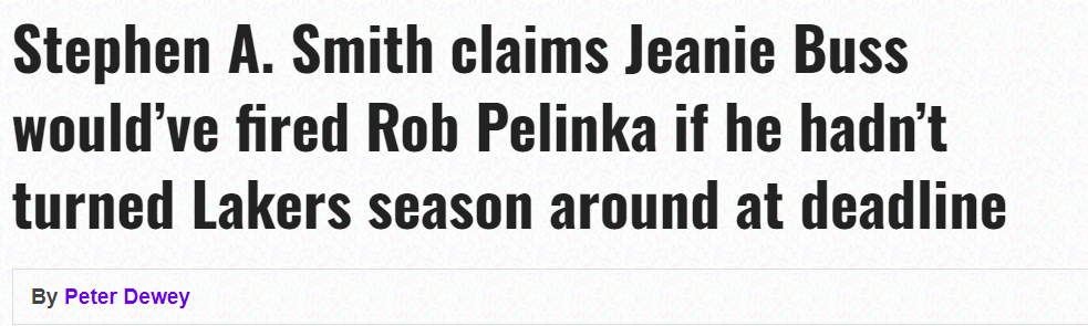 據名嘴史蒂芬-A-史密斯透露,如果湖人女老闆珍妮-巴斯沒有看到佩林卡在上賽季的交易截止日前扭轉局面,她很可能會選擇解僱這位總主管.