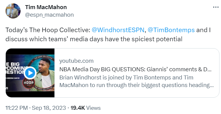 休賽季未能完成內線補強的勇士隊,正式開始試訓老將霍華德,與此同時,隨著新賽季的臨近,球隊新援保羅也開始與追夢合練,面對保羅希望首發這一甜蜜煩惱,名記Tim MacMahon在節目中公開表示CP3最佳定位是第6人。