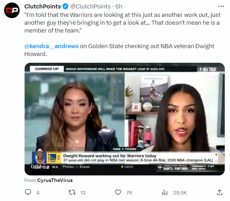 根據記者Kendra Andrews報道,經過短暫的計劃與準備之後,霍華德預計與勇士會面完成試訓。