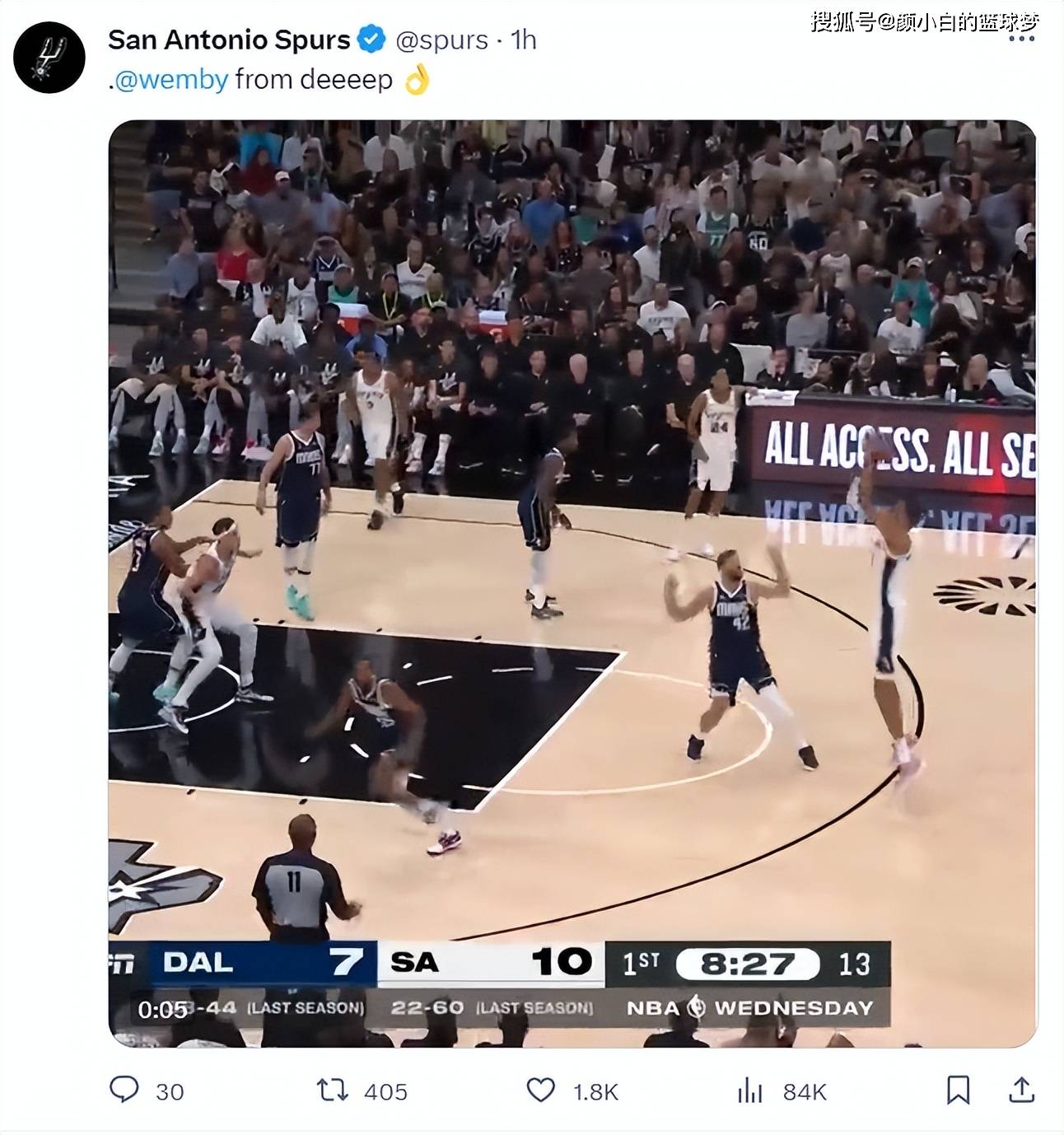 這場比賽是文班亞馬NBA常規賽的首秀,ESPN竟然已經拿他跟麥可-喬丹、勒布朗-詹姆斯相比了。要知道MJ首秀:16分7板7助2斷4帽;詹姆斯首秀25分6板9助4斷。文班能跟他們比?(結果文班真的不如喬詹)
