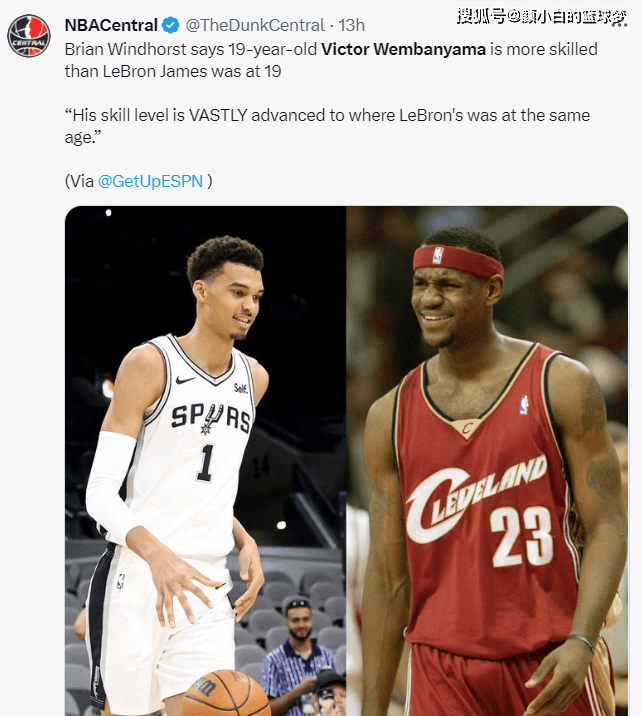 ESPN記者布萊恩-文霍斯特也說,19歲的文班亞馬比19歲的勒布朗更有技巧,他的技術水平大大領先同一年齡的詹姆斯。