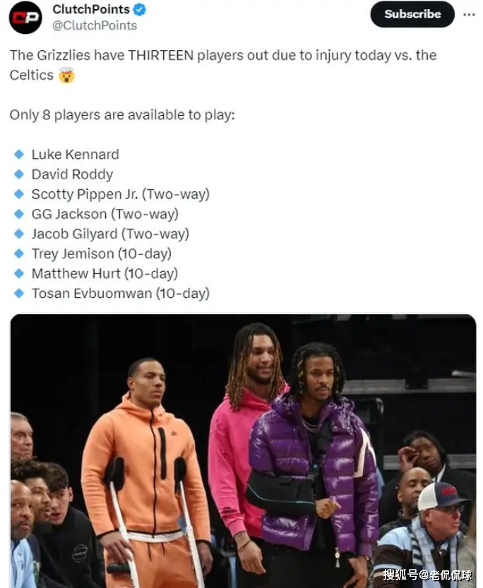 事實上,最讓人意外的當初灰熊隊。前幾個賽季,雖然這支孟菲斯球隊還是一支青年軍,但是在聯盟新星莫蘭特的帶領下,戰績穩居西部前三,一直都是季後賽的常客,莫蘭特還一度口出狂言,表示西部這邊完全沒有競爭對手,唯有凱爾特人尚可一戰。然而,話音剛落,打臉就來了,第二季球隊核心莫蘭特就因為輕狂,一再持槍炫耀,被NBA聯盟接連重罰,球隊開始走下坡路。而到了本季,灰熊隊更是悲慘,全隊已經有9人因傷長期缺陣,最多一場比賽,傷病報告中多達13人缺戰,球隊靠著3個雙向合約球員以及3名10天短合約臨時球員才堪堪湊夠比賽人數,可以說是本賽季聯盟最慘的球隊。