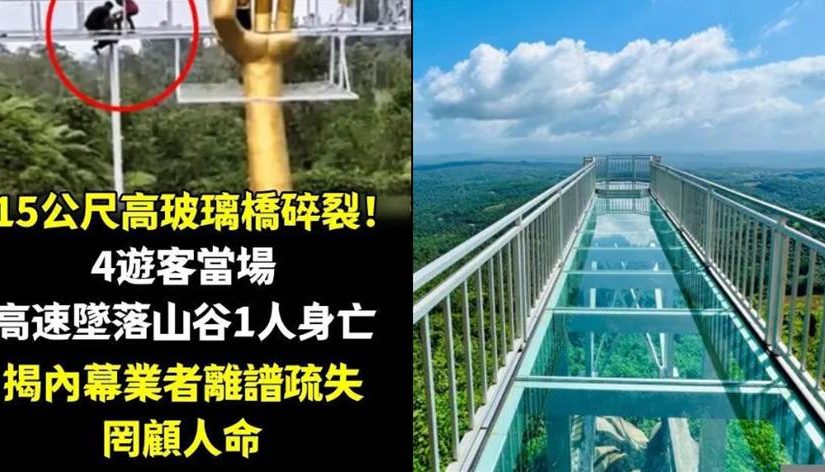 沒想到,The Geong天空步道才開放半年便發生意外,傳出玻璃橋面破裂的驚悚事故。事發時,橋上共有11名遊客,其中4人不幸墜落。一名遊客從15公尺高的橋面直墜地面,當場身亡;另有2人緊抓住橋架避免墜落,還有1人則被卡在破裂的洞口,僥倖倖存。