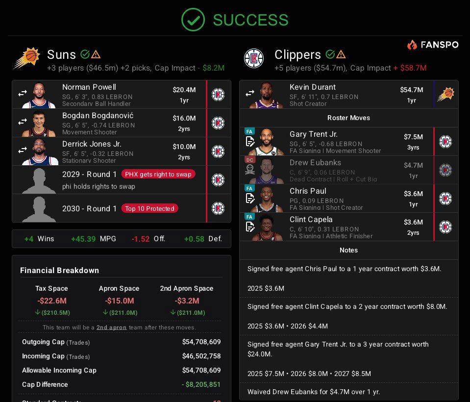 重點續約,交易策略:火箭也有可能選擇先與伊森簽下4年8000萬美元的合同,並讓史密斯進入受限制自由球員市場。如果其他球隊開出的報價超過2500萬美元,火箭可選擇不匹配,從而騰出薪資空間去追逐其他即戰力球員。這種策略可以在保留防守核心的同時,釋放出更多的薪資彈性。