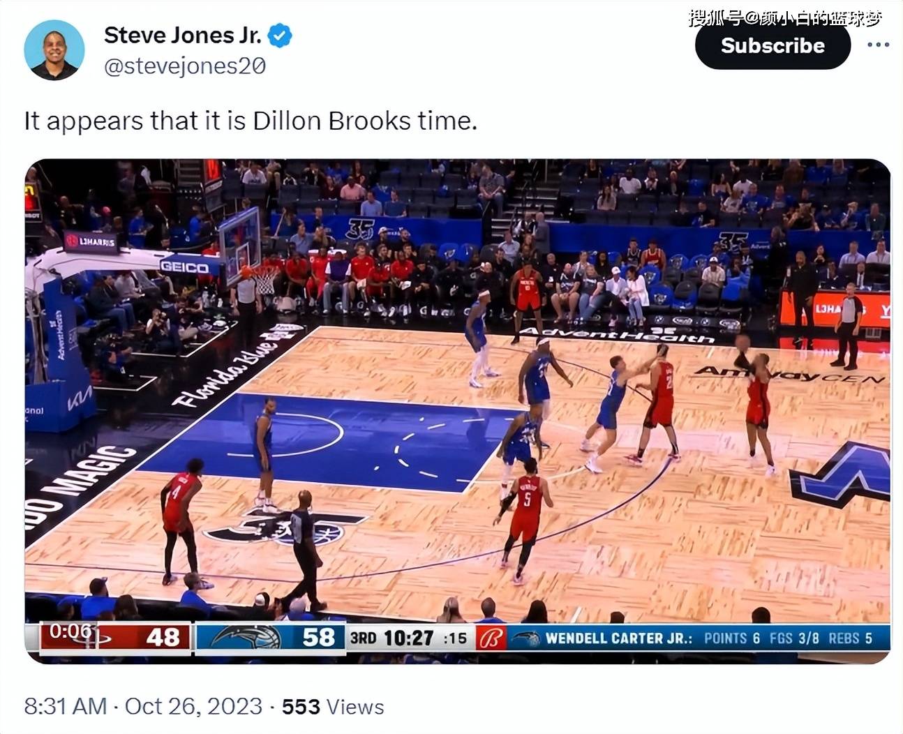 尼克斯方面,朱利葉斯-蘭德爾22投5中14分11籃板7助攻,傑倫-布倫森15分6助攻,RJ-巴雷特24分,伊曼紐爾-奎克利24分6籃板4助攻。
