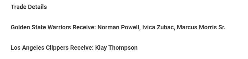 明尼蘇達灰狼獲得:德雷蒙德格林,喬納森庫明加,加里佩頓二世,2025年首輪選秀權,2027年首輪選秀權