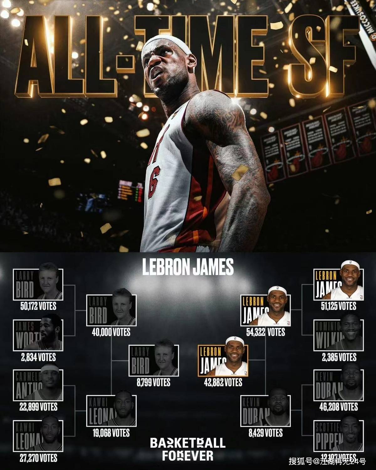 在詹姆斯之前,NBA的歷史第一小前鋒一直都是拉里伯德,雖然伯德的職業生涯比較短暫,但巔峰時期的他也是取得了足夠多的榮譽,光一個三連MVP就夠碾壓其他小前鋒了。不過詹姆斯並不是普通的全明星,在他進入聯盟之前,外界就稱他是喬丹的接班人了。進入聯盟之後,詹姆斯也算沒讓球迷失望,他也打出了符合外界對他的吹捧和順位的表現。如今詹姆斯已經在聯盟征戰20個賽季了,各種榮譽他都拿到手了,這也讓他有了超越伯德的機會。